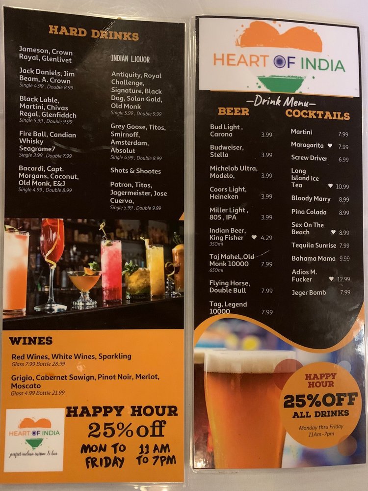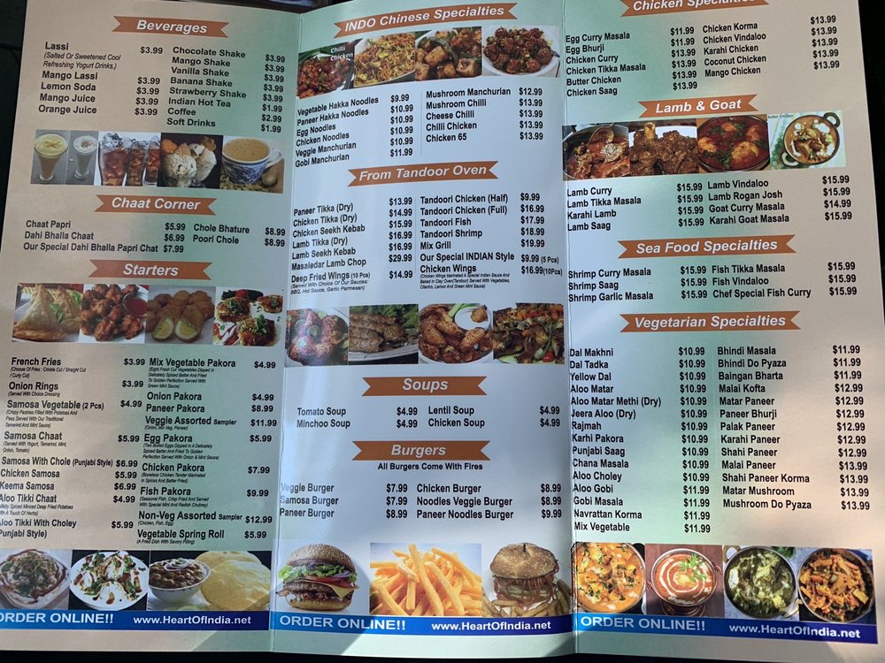 Heart of India, a popular Indian restaurant located in Bakersfield, CA, offers a delightful dining experience with a wide range of menu options. Known for its delicious and authentic Indian cuisine, customers have praised the flavorful dishes such as Butter Chicken, Palak Paneer, and Garlic Naan. The restaurant also caters to vegan options and provides excellent service with attentive staff members. The ambience is welcoming and the atmosphere is great for both casual dinners and group gatherings. Customers have highlighted the generous portion sizes, fast service, and the variety of options available. Whether you're a first-time Indian food enthusiast or a seasoned connoisseur, Heart of India promises a memorable dining experience with its diverse menu offerings and exceptional flavors.
